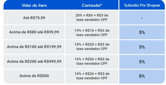 Se você ainda opera como Pessoa Física, o cerco apertou. A Shopee continua incentivando a profissionalização (migração para CNPJ) através de ajustes nas taxas fixas: